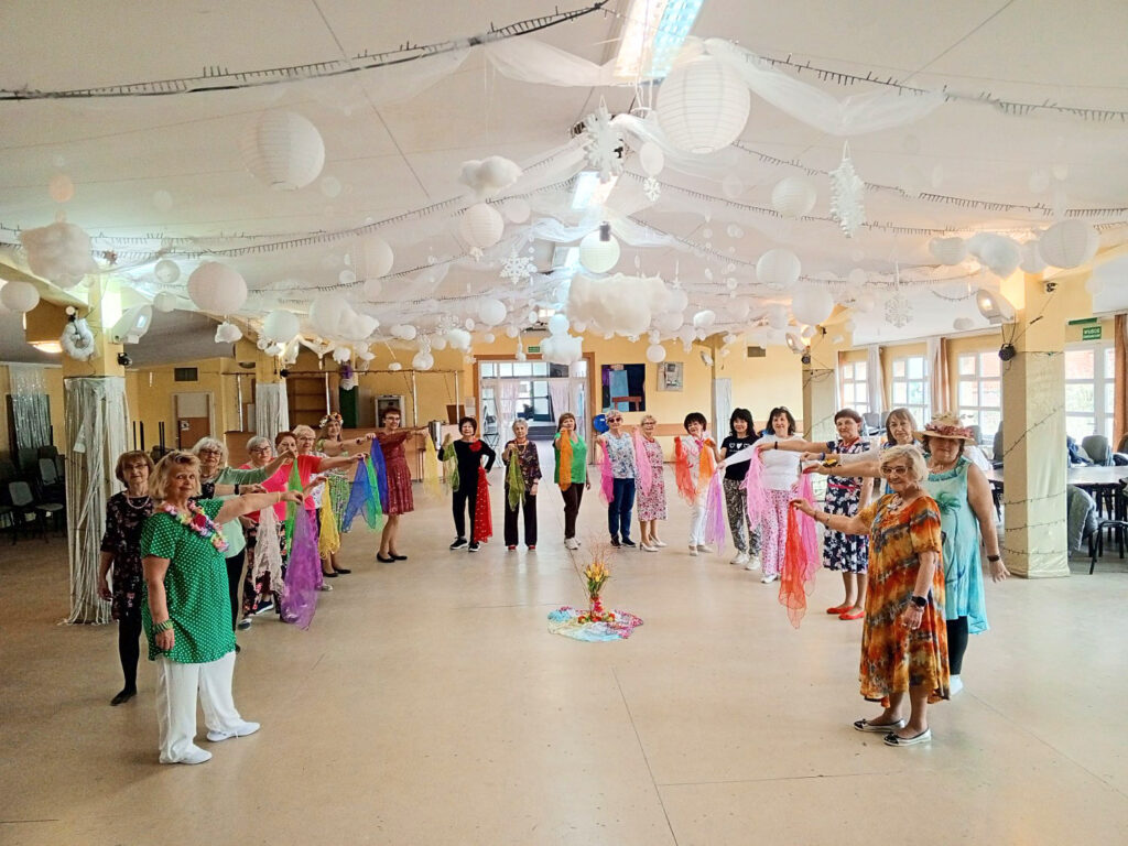 24 marca 2026, na zajęciach tańca terapeutycznego powitałyśmy wiosnę kolorowymi strojami i pięknym walcem z kolorowymi chusteczkami. Do walca „Gramofon” Eugena Dogi ułożyłam prostą choreografię, której tancerki szybko się nauczyły i od razu zatańczyły. Kolorowe tancerki tworzą piękny klimat na zajęciach.